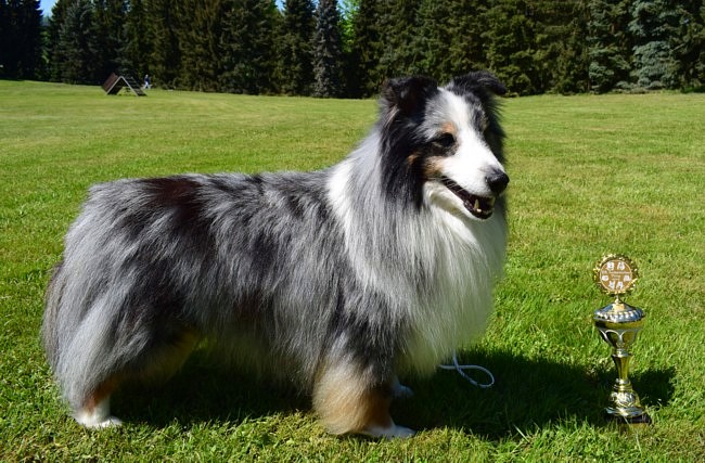 Seine Abstammung ist für mich einfach ein Traum! Sky`s Eltern sind Grandgables Say it Again Sam "Sammie" und Dawnville Where There`s Smoke "Therese". Sky hat sehr viel von seinen Eltern geerbt. Und darüber bin sich sehr froh. Seine Ausstellungsergebnisse können sich sehen lassen. Sein größter Erfolg war bisher die Nationale Ausstellung in Erfurt 2012! Sky konnte in der Offenen Klasse ein V1 erringen und gewann dann noch sein erstes
