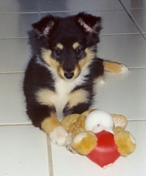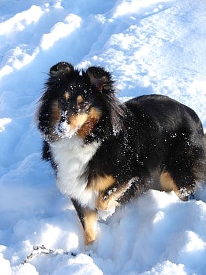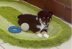 Ihr zweites Vorzüglich in der Jugendklasse bekam sie in Gotha 2002. Frau Müller bewertete Vicky so: "13-monatige tricolour Hündin, femininer gut proportionierter Kopf, gut angesetzte und getragene Ohren, sehr gute Halslänge, Rückenwölbung und Tiefe, gute Rückenlinie, ausgeprägte Rückenhandlinie, schwungvolle Bewegung, gute Haartextur dem Alter entsprechend aber z. Z. wenig Menge, bestens präsentiert" Leider hat sich an der Fellmenge bis heute nicht viel getan. Seit ca. einem Jahr trainiere ich mit Vicky Agility. Wenn es nach ihr ginge, würde sie lieber Stöckchen spielen, als im Parcour zu springen und zu klettern. |